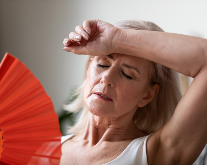 - Distúrbios do sono: Insônia, ondas de calor (fogachos) e suores noturnos;